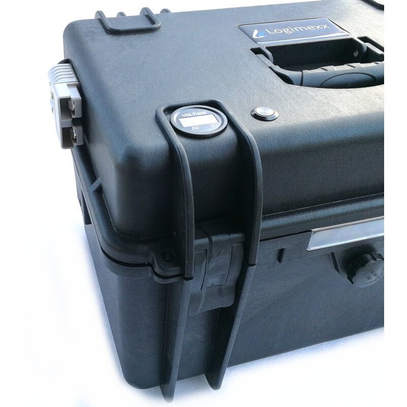 Als besonderes Highlight ist im Koffer bereits der Batterie Monitor fürs Smartphone integriert. Mit dieser in den Koffer integrierten Elektronik (Batteriemanagement) können Sie bei Bedarf über eine App an Ihrem Smartphone die Spannung ablesen oder auch die Ladezeit bzw. Restfahrtzeit ablesen.